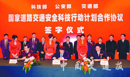 2月18日,科技部、公安部和交通部签署国家道路交通安全科技行动计划合作协议,标志着我国最大规模的一次道路交通安全科技合作行动正式全面启动。行动计划力争通过几年的努力,实现道路交通事故死亡人数逐年下降、特大道路交通事故进一步减少、万车死亡率接近中等发达国家水平,最大程度地保障人民群众生命财产安全。